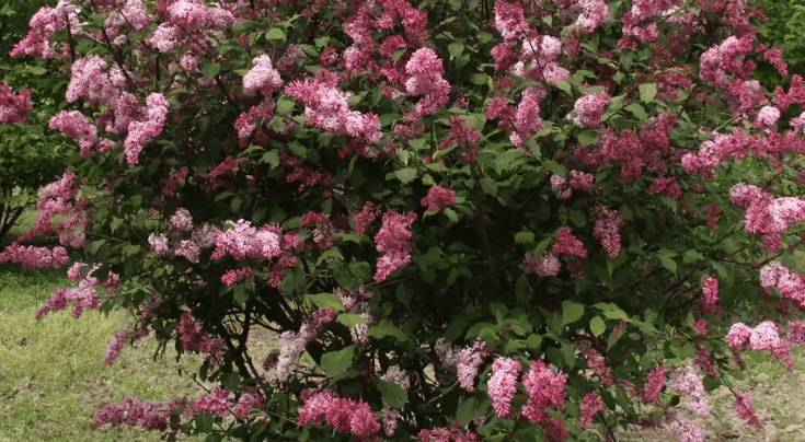 Lilas de preston aux fleurs simples de couleur rose. Attire les papillons.